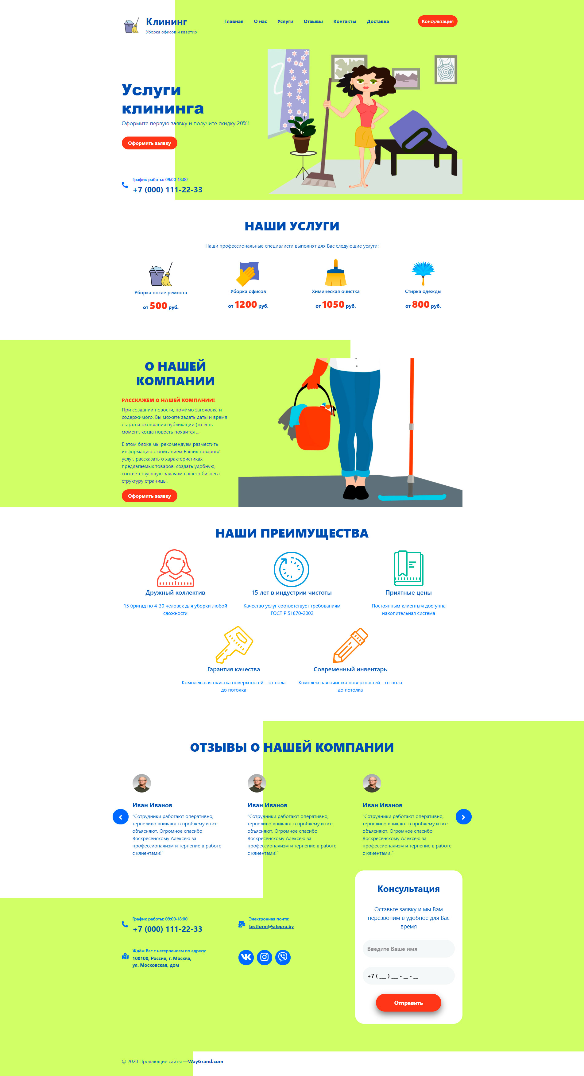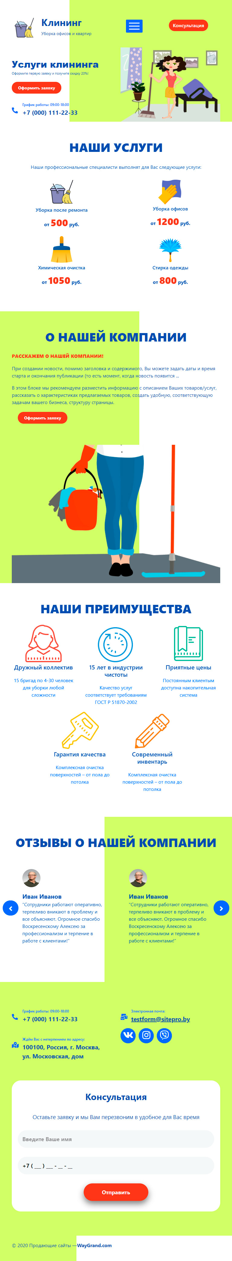 Закажите готовый продающий сайт лендинг #0628202 в Пятигорске за 1-3 дня «под ключ»: свёрстан, отрисован и готов к рекламе. Тематика шаблона «Услуги клининга».