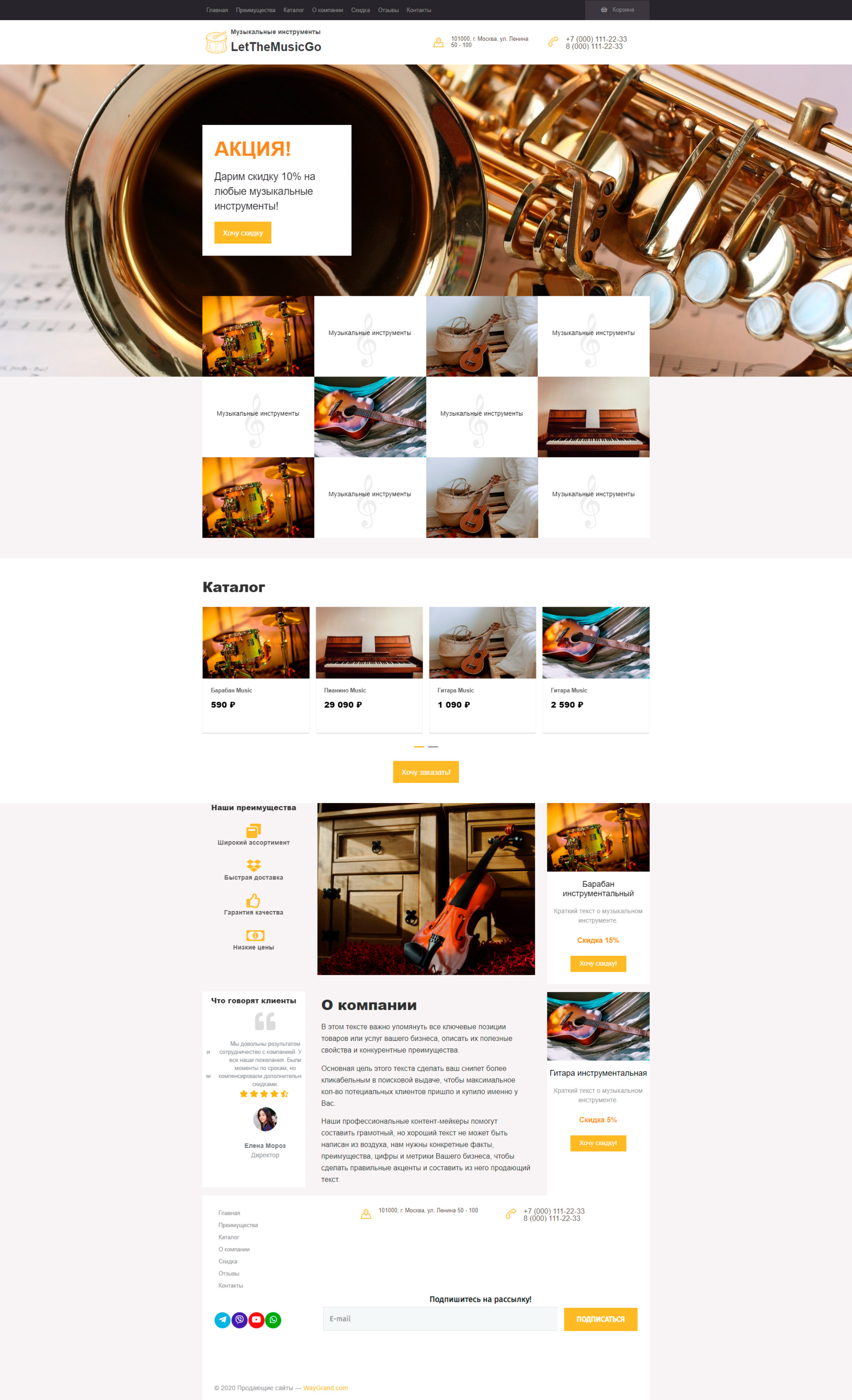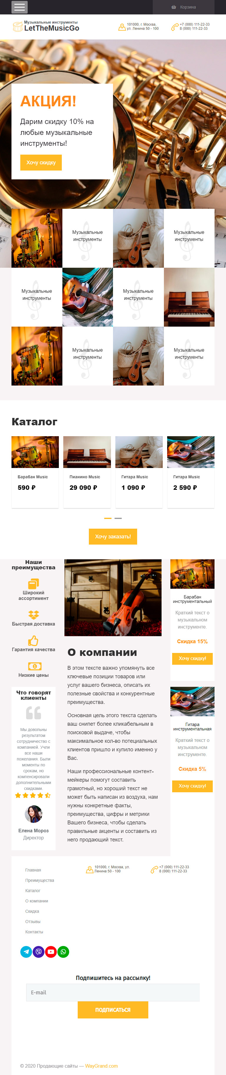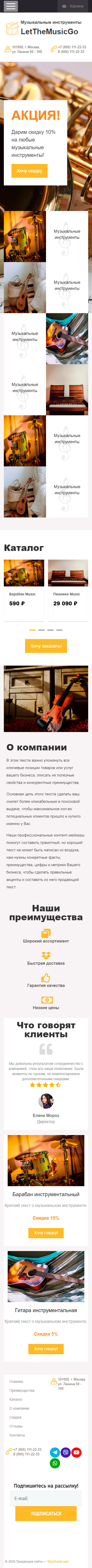 Закажите готовый продающий сайт лендинг #0710201 в Пятигорске за 1-3 дня «под ключ»: свёрстан, отрисован и готов к рекламе. Тематика шаблона «Музыкальные инструменты».