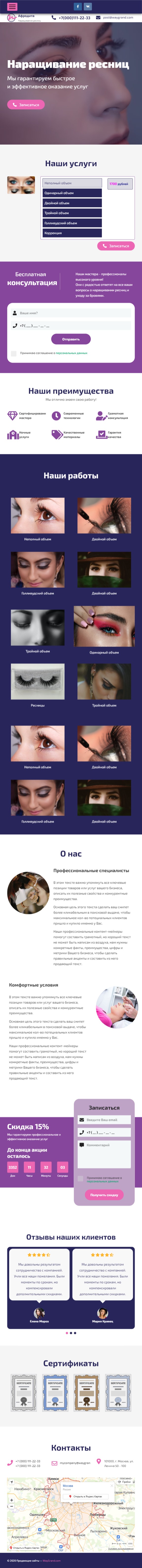 Закажите готовый продающий сайт лендинг #1117201 в Пятигорске за 1-3 дня «под ключ»: свёрстан, отрисован и готов к рекламе. Тематика шаблона «Наращивание ресниц».