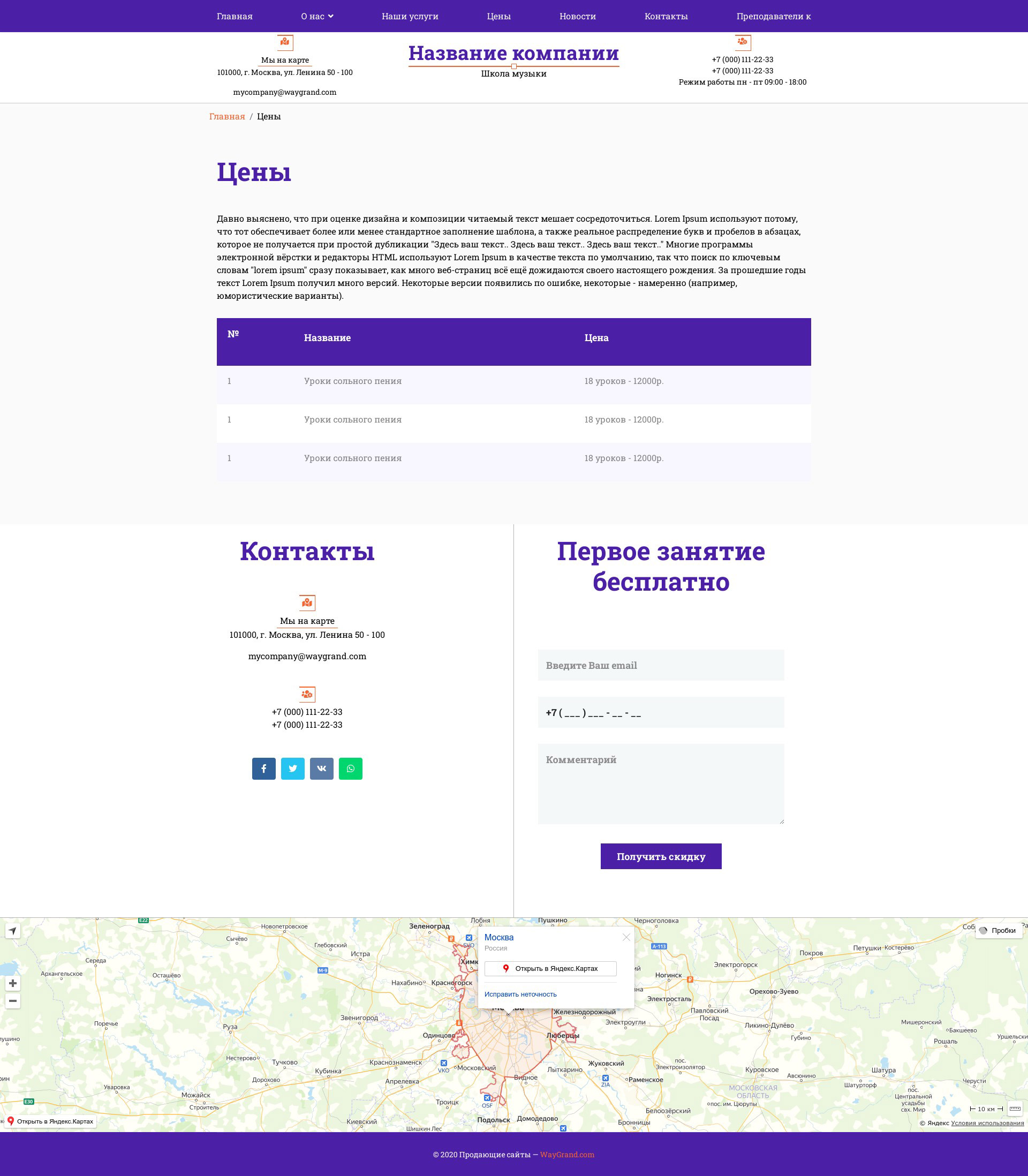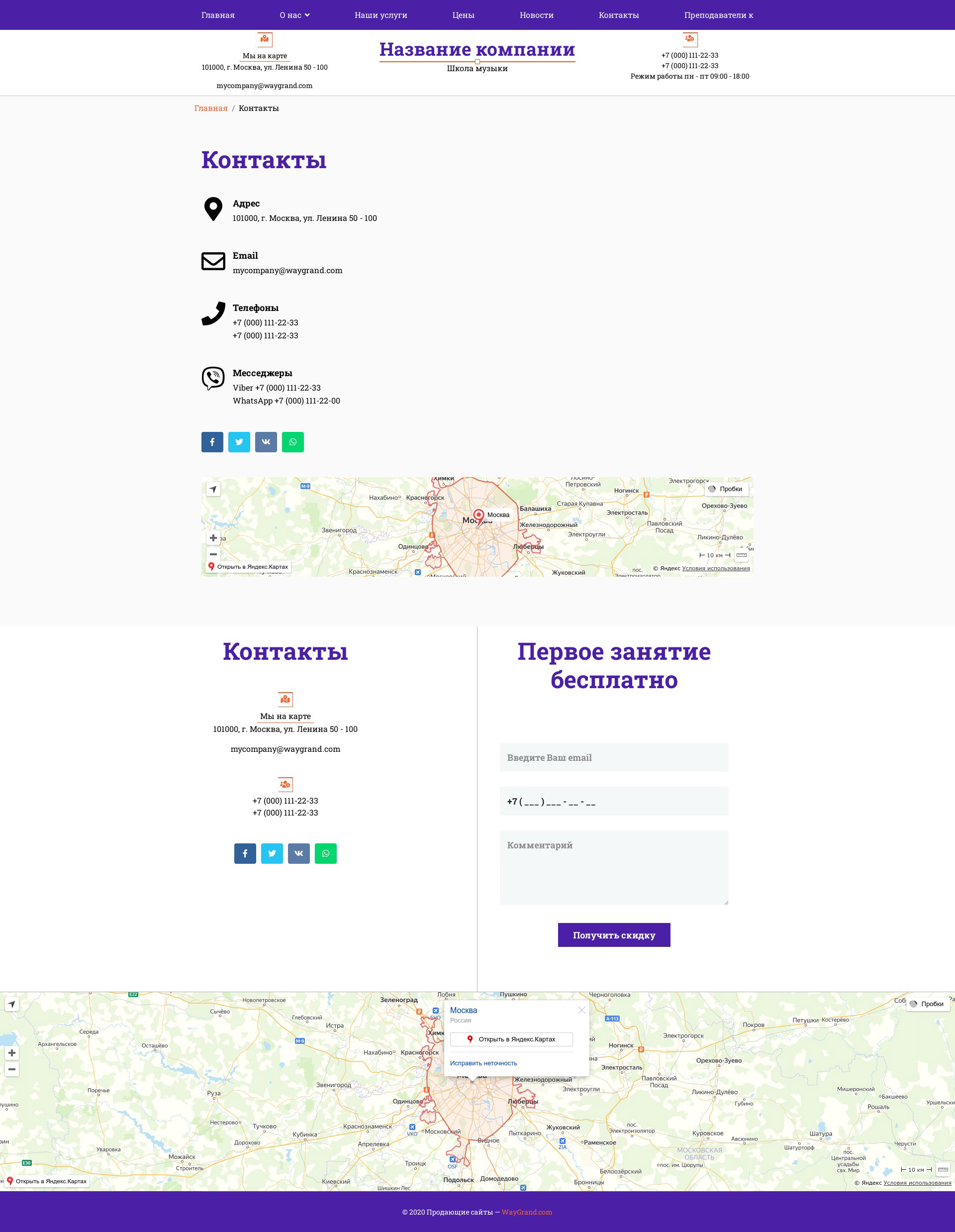 Закажите готовый продающий сайт визитка #1431301 в Пятигорске за 5-7 дня «под ключ»: свёрстан, отрисован и готов к рекламе. Тематика шаблона «Школа музыки».