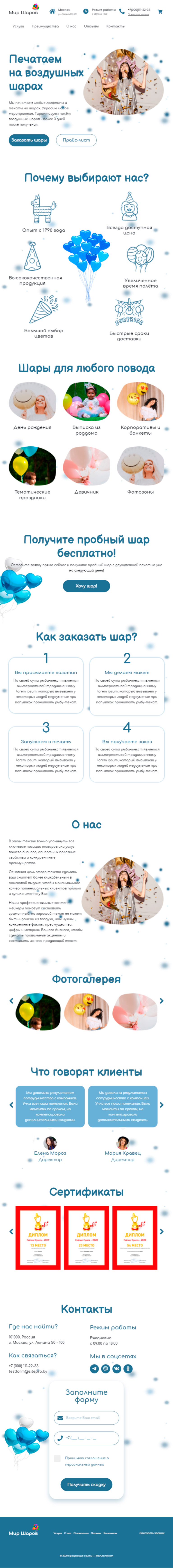 Закажите готовый продающий сайт лендинг #1826202 в Пятигорске за 1-3 дня «под ключ»: свёрстан, отрисован и готов к рекламе. Тематика шаблона «Печать на воздушных шарах».