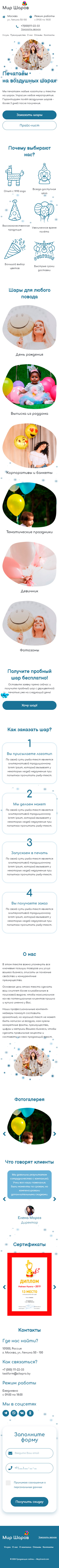 - Промоблок "Печатаем на воздушных шарах" с кнопками призыва к действию "Заказать шары" и "Прайс-лист"
