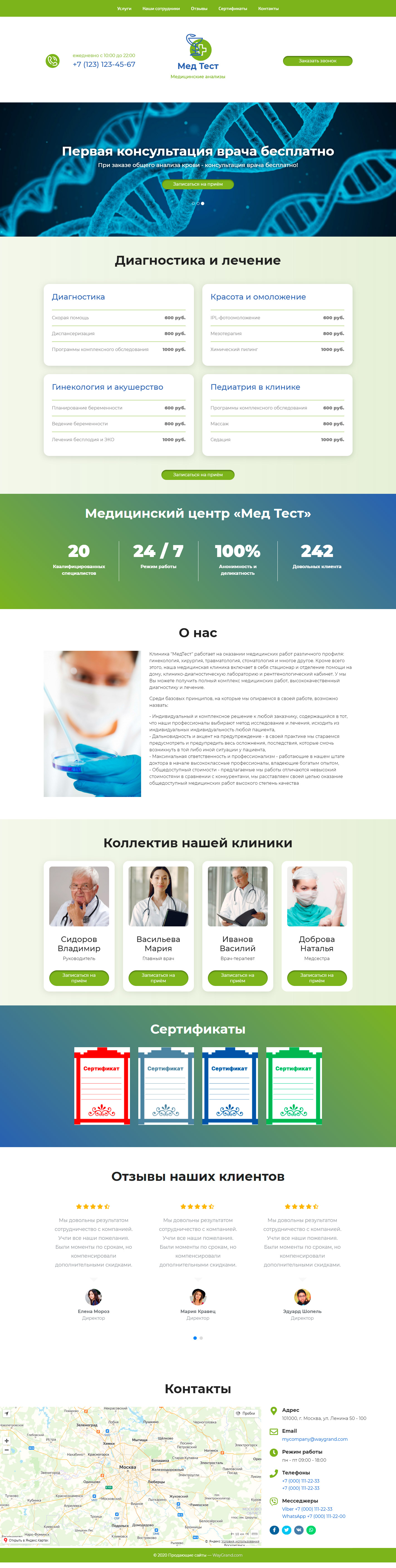 Закажите готовый продающий сайт лендинг #1025201 в Пятигорске за 1-3 дня «под ключ»: свёрстан, отрисован и готов к рекламе. Тематика шаблона «Медицинские анализы».