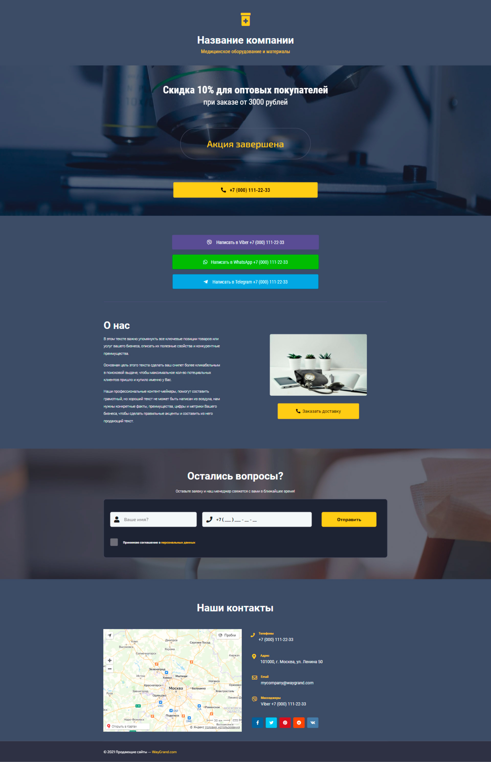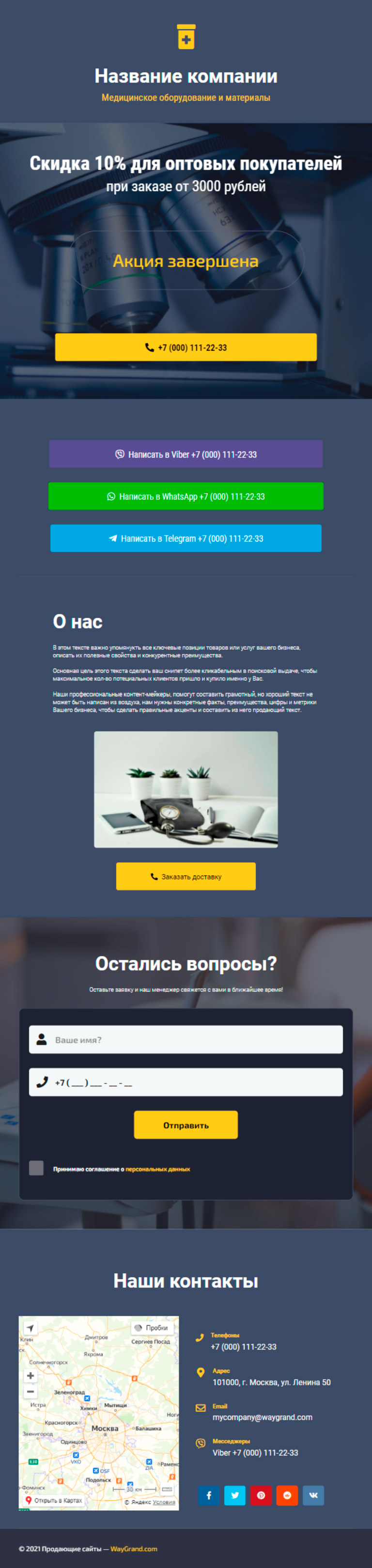 Закажите готовый продающий сайт визитка #1027101 в Пятигорске за 5-7 дня «под ключ»: свёрстан, отрисован и готов к рекламе. Тематика шаблона «Медицинское оборудование и материалы».