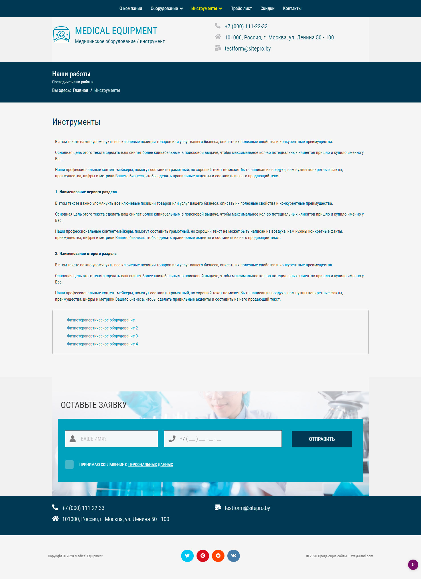Закажите готовый продающий сайт визитка #1029301 в Пятигорске за 5-7 дня «под ключ»: свёрстан, отрисован и готов к рекламе. Тематика шаблона «Медицинское оборудование / инструмент».