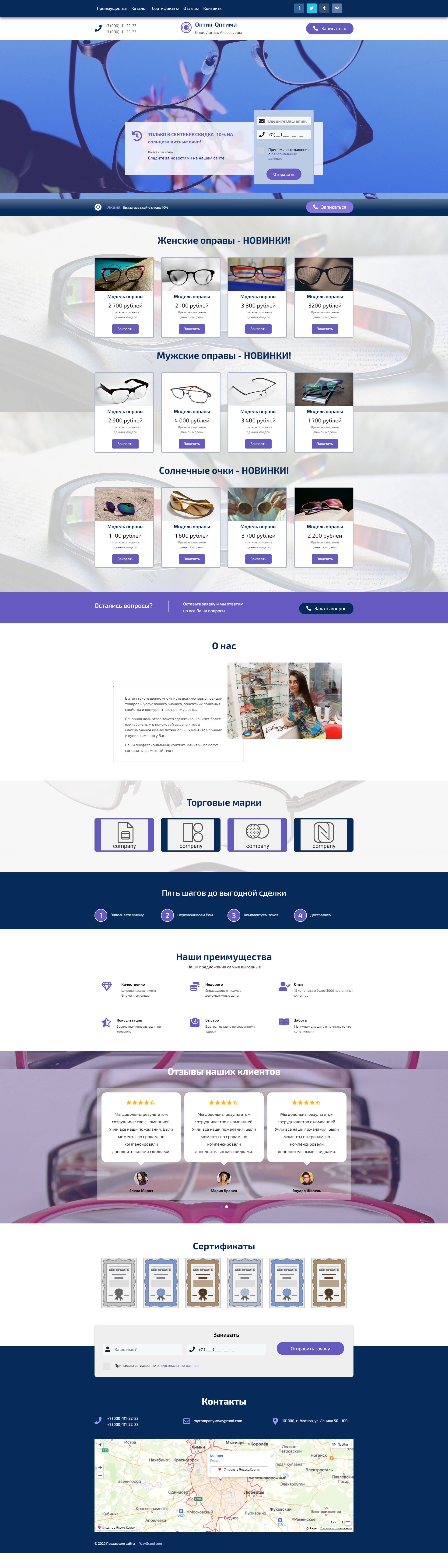 Закажите готовый продающий сайт лендинг #1032201 в Пятигорске за 1-3 дня «под ключ»: свёрстан, отрисован и готов к рекламе. Тематика шаблона «Оптика».