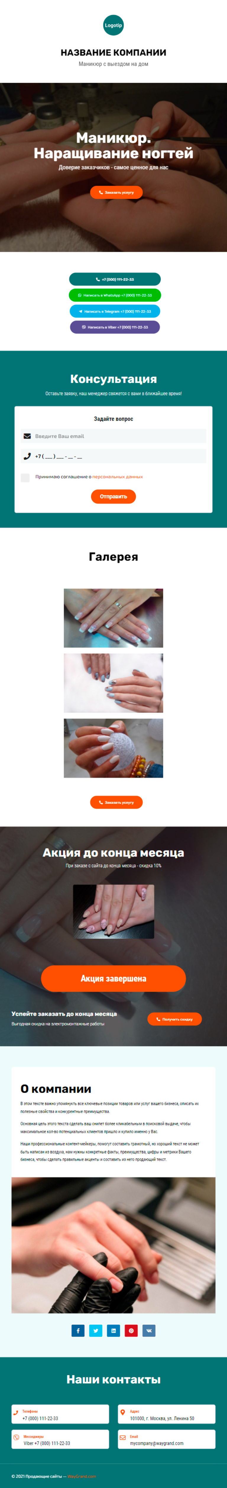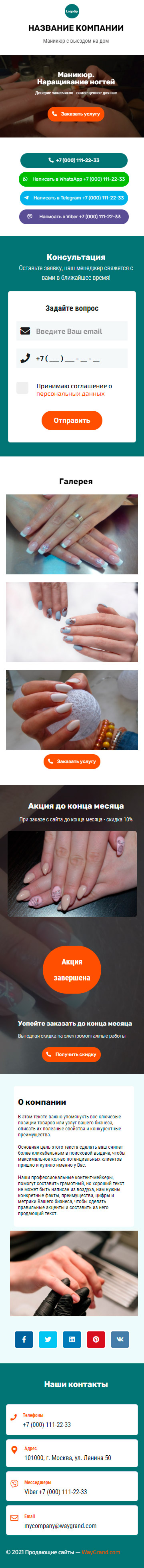 Закажите готовый продающий сайт визитка #1107101 в Пятигорске за 5-7 дня «под ключ»: свёрстан, отрисован и готов к рекламе. Тематика шаблона «Маникюр. Наращивание ногтей».