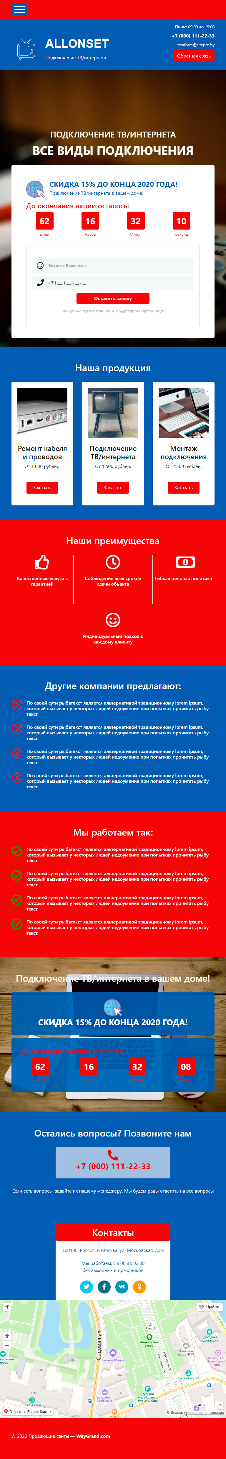 Закажите готовый продающий сайт лендинг #0718201 в Пятигорске за 1-3 дня «под ключ»: свёрстан, отрисован и готов к рекламе. Тематика шаблона «Подключение ТВ/интернета».
