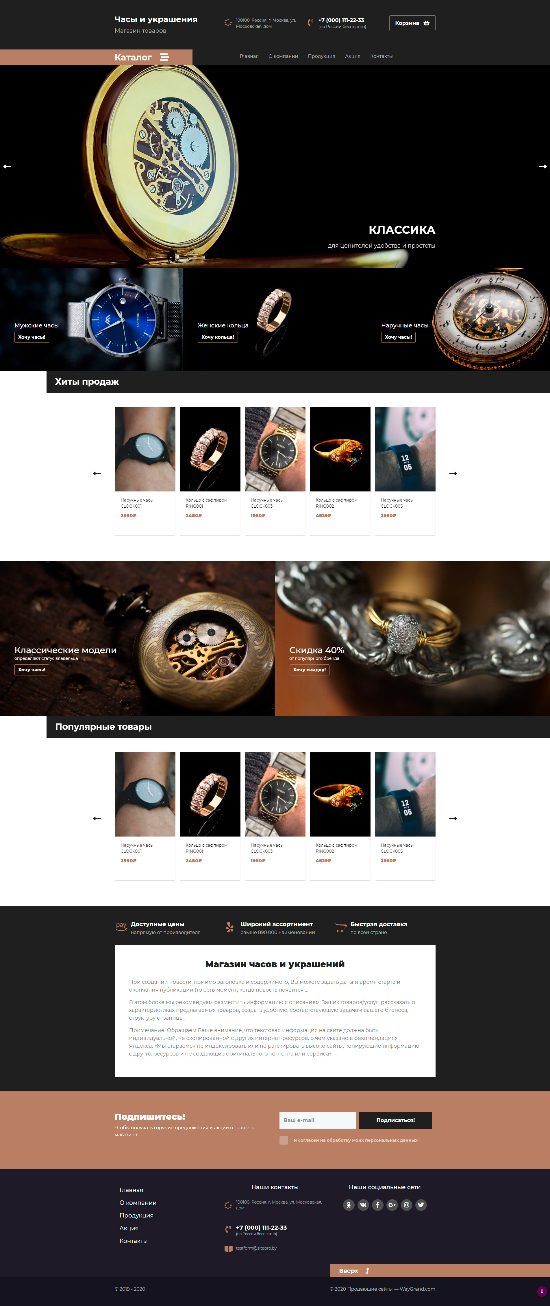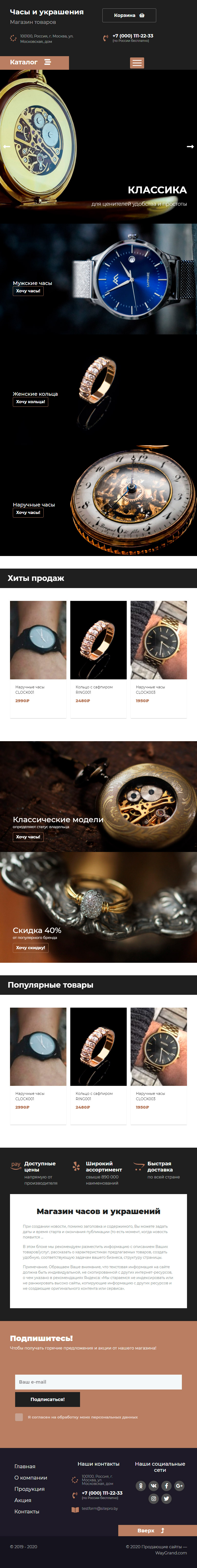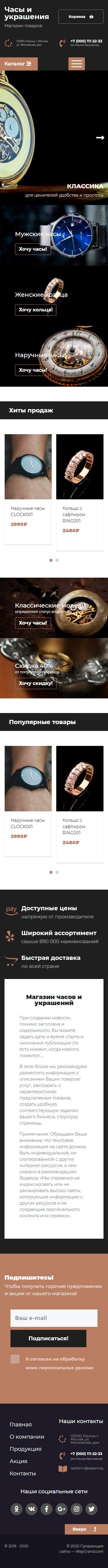Закажите готовый продающий сайт лендинг #2437201 в Пятигорске за 1-3 дня «под ключ»: свёрстан, отрисован и готов к рекламе. Тематика шаблона «Часы и украшения».