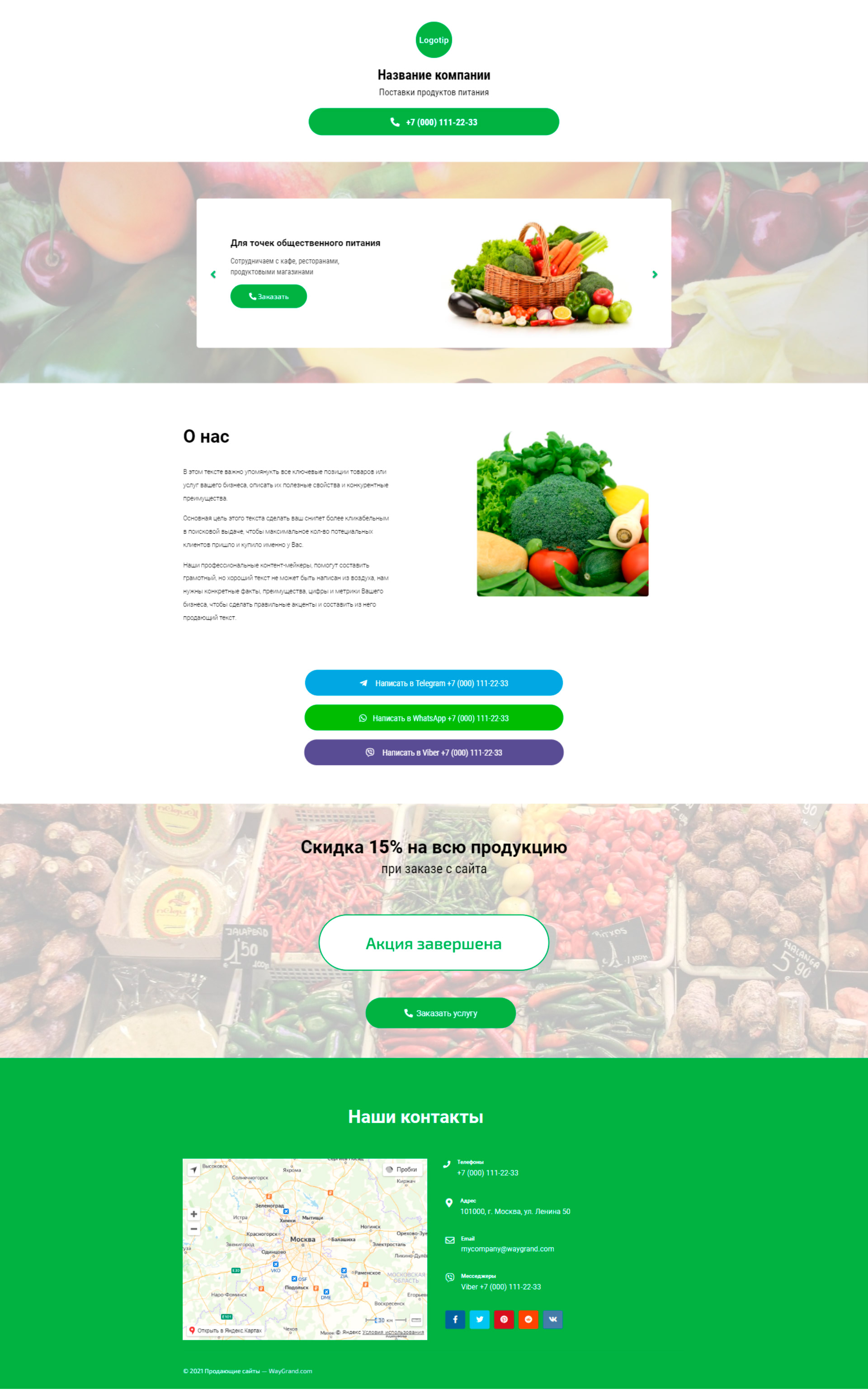 Закажите готовый продающий сайт визитка #1723101 в Пятигорске за 5-7 дня «под ключ»: свёрстан, отрисован и готов к рекламе. Тематика шаблона «Поставки продуктов питания».