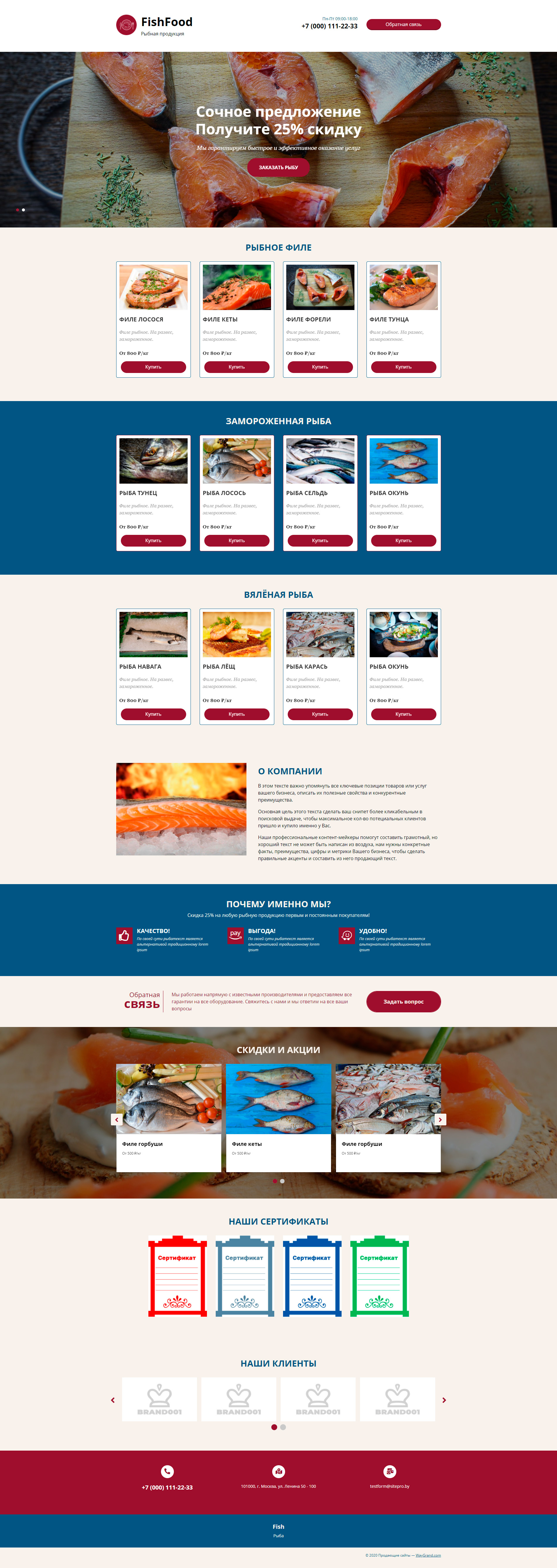 Закажите готовый продающий сайт лендинг #1731203 в Пятигорске за 1-3 дня «под ключ»: свёрстан, отрисован и готов к рекламе. Тематика шаблона «Рыбная продукция».