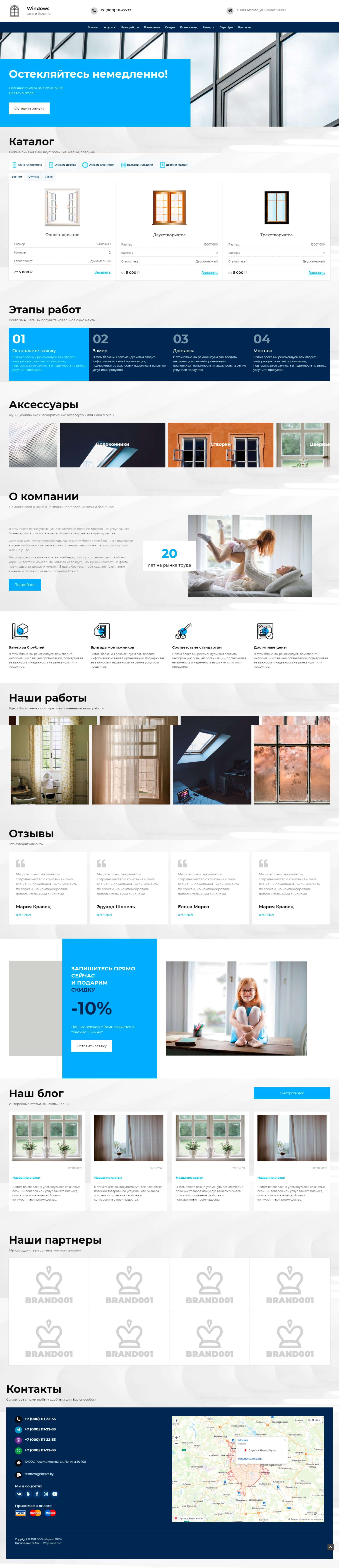 - Промоблок "Остекляйтесь немедленно!" с кнопкой призыва к действию "Оставить заявку"