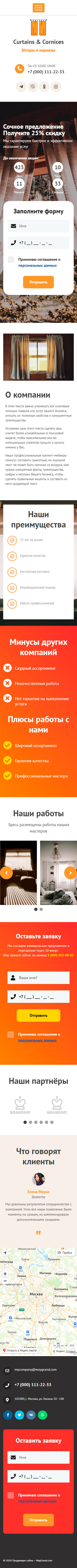 Закажите готовый продающий сайт лендинг #2209201 в Пятигорске за 1-3 дня «под ключ»: свёрстан, отрисован и готов к рекламе. Тематика шаблона «Карнизы и шторы».