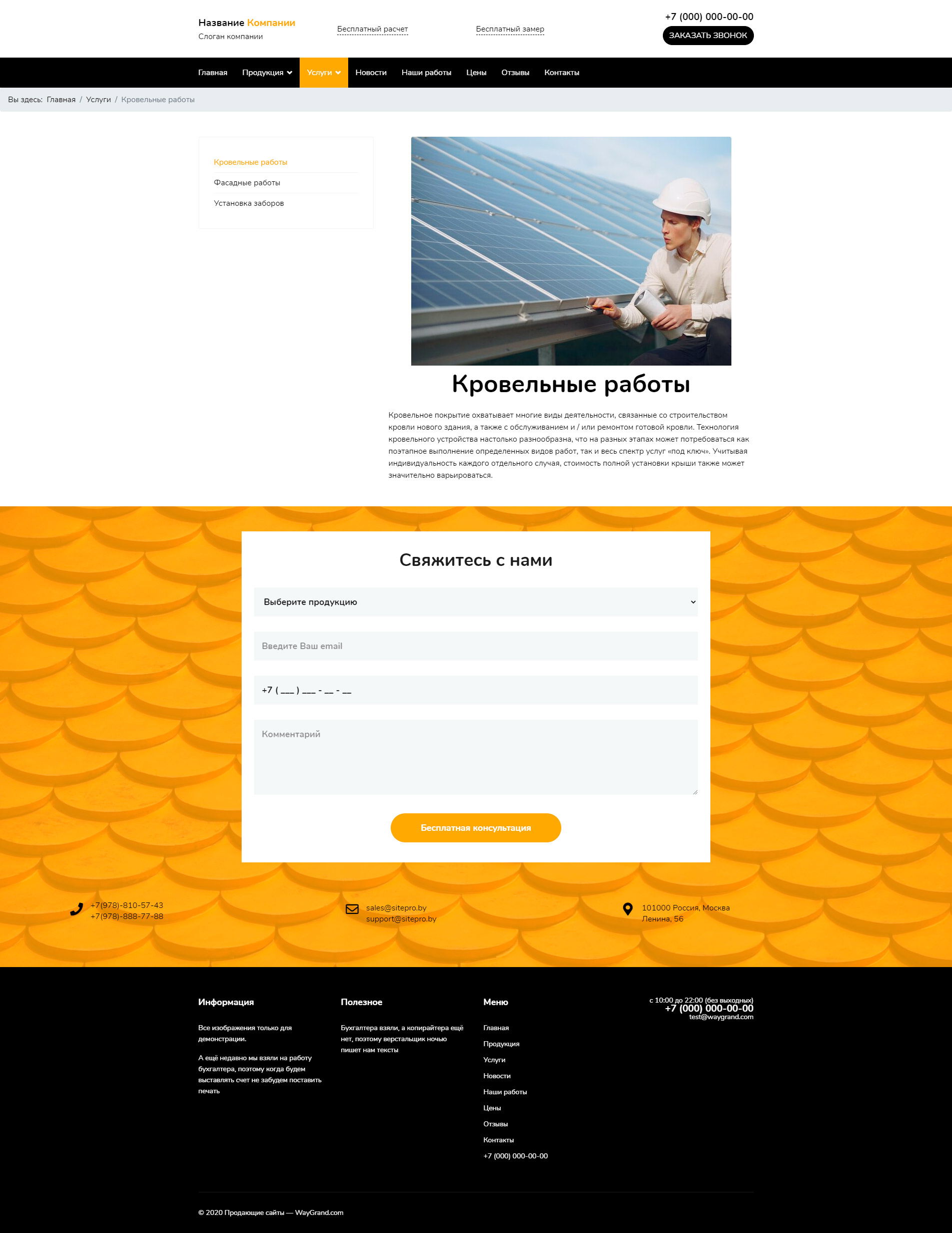 Закажите готовый продающий сайт визитка #2132301 в Пятигорске за 5-7 дня «под ключ»: свёрстан, отрисован и готов к рекламе. Тематика шаблона «Заборы, кровля, фасады».