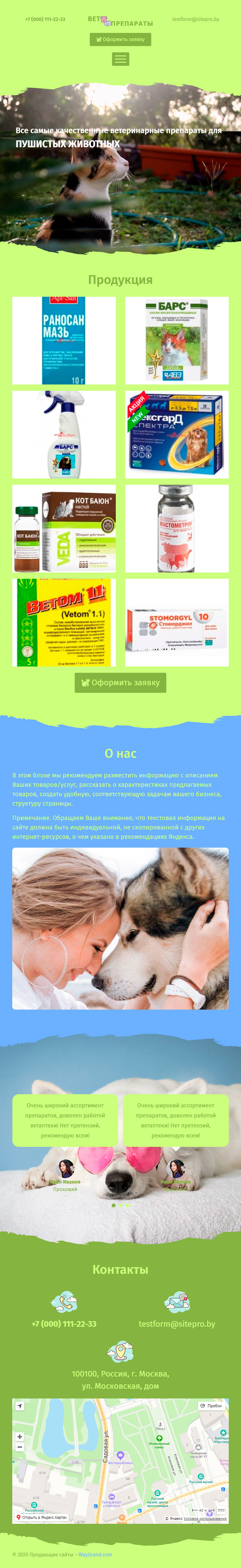 Закажите готовый продающий сайт лендинг #2305202 в Пятигорске за 1-3 дня «под ключ»: свёрстан, отрисован и готов к рекламе. Тематика шаблона «Ветпрепараты».