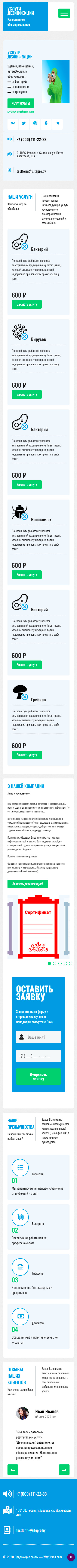 Закажите готовый продающий сайт лендинг #0608201 в Пятигорске за 1-3 дня «под ключ»: свёрстан, отрисован и готов к рекламе. Тематика шаблона «Услуги дезинфекции».