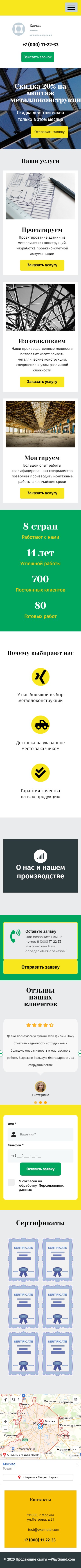 Закажите готовый продающий сайт лендинг #2027201 в Пятигорске за 1-3 дня «под ключ»: свёрстан, отрисован и готов к рекламе. Тематика шаблона «Металлоконструкции».