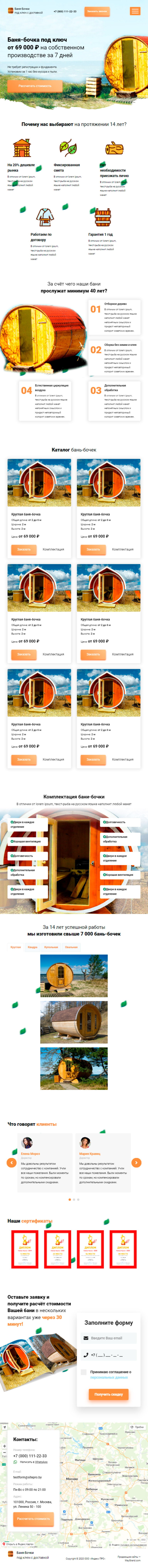Закажите готовый продающий сайт лендинг #2172204 в Пятигорске за 1-3 дня «под ключ»: свёрстан, отрисован и готов к рекламе. Тематика шаблона «Баня-бочки».