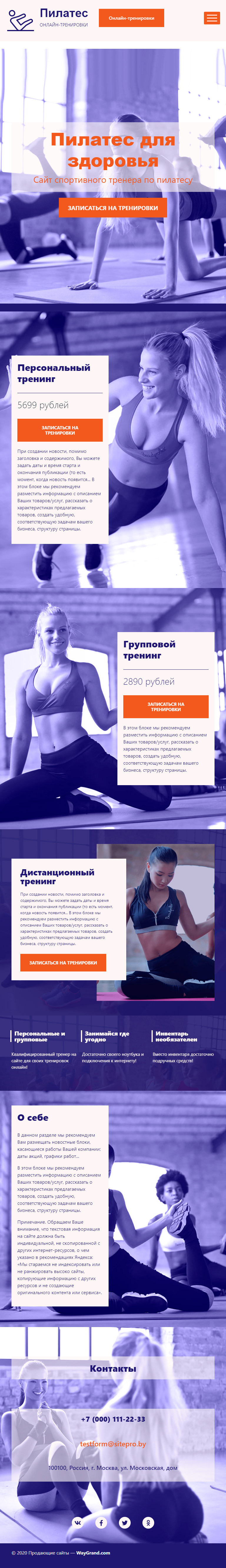 Закажите готовый продающий сайт лендинг #1955205 в Пятигорске за 1-3 дня «под ключ»: свёрстан, отрисован и готов к рекламе. Тематика шаблона «Пилатес».