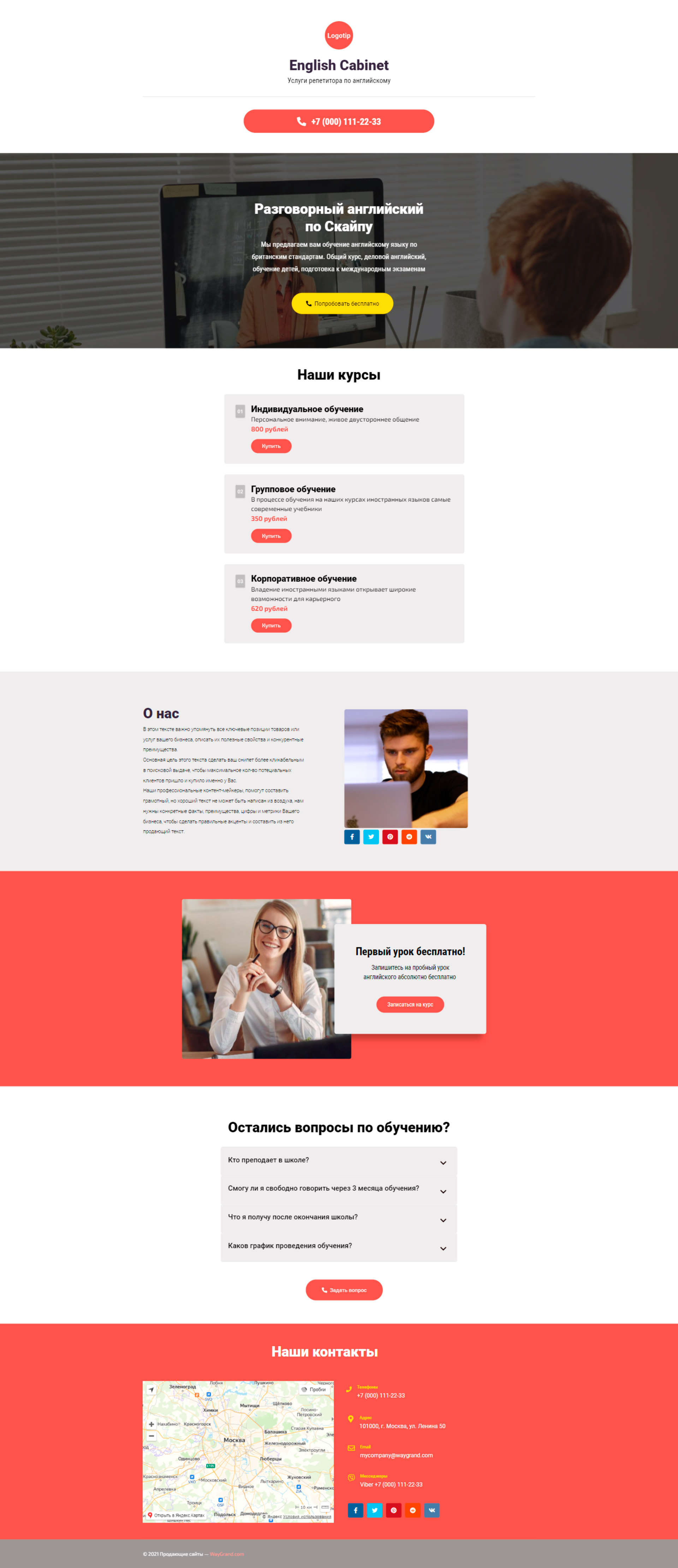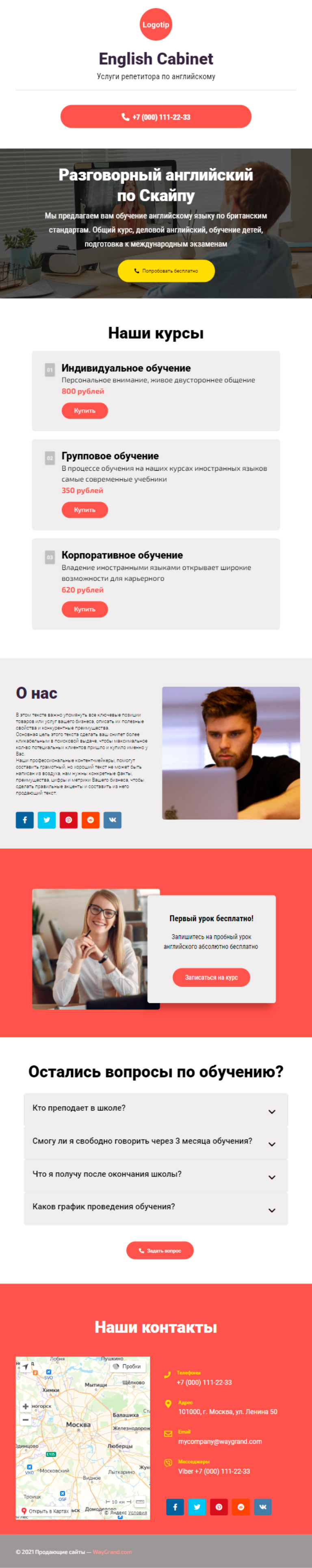 Закажите готовый продающий сайт визитка #1463101 в Пятигорске за 5-7 дня «под ключ»: свёрстан, отрисован и готов к рекламе. Тематика шаблона «Услуги репетитора по английскому».