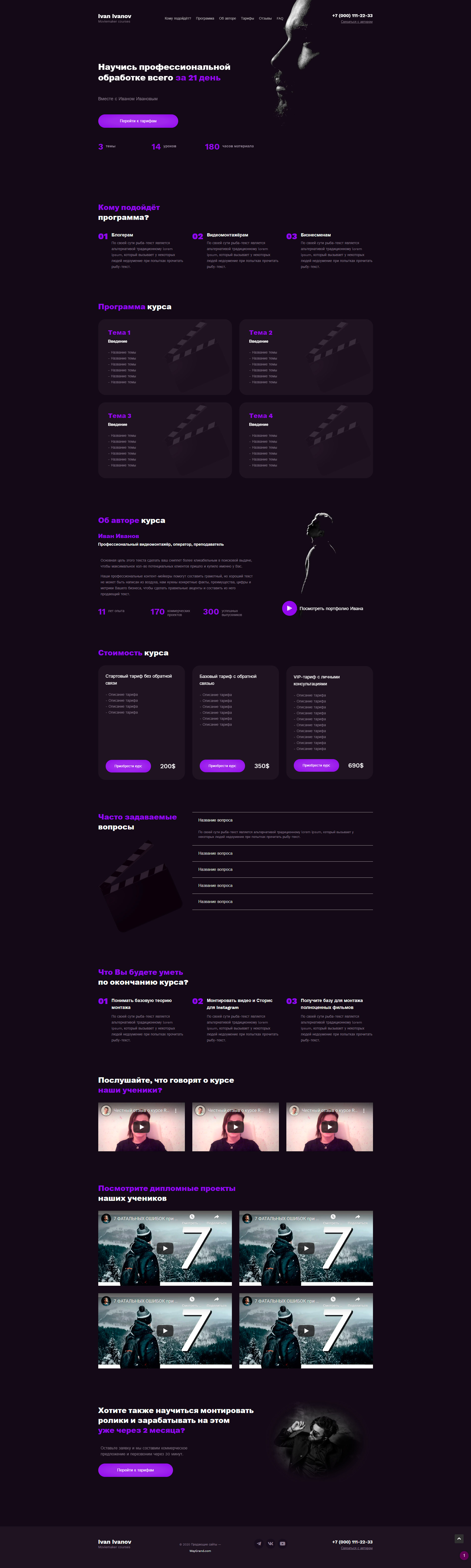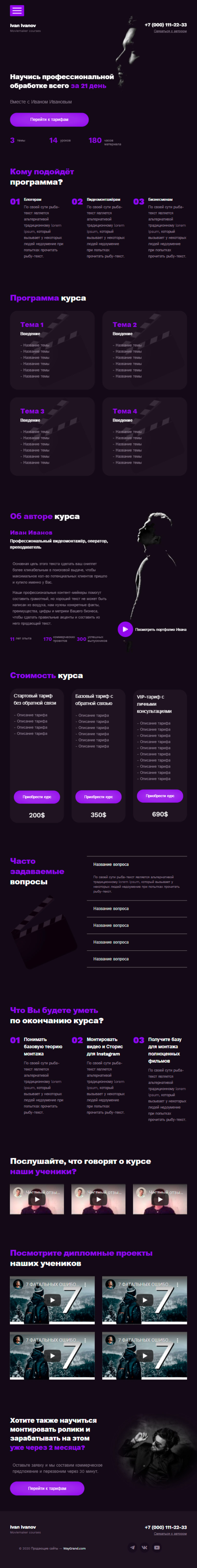 Закажите готовый продающий сайт лендинг #1467204 в Пятигорске за 1-3 дня «под ключ»: свёрстан, отрисован и готов к рекламе. Тематика шаблона «Для курса видеомонтажа».