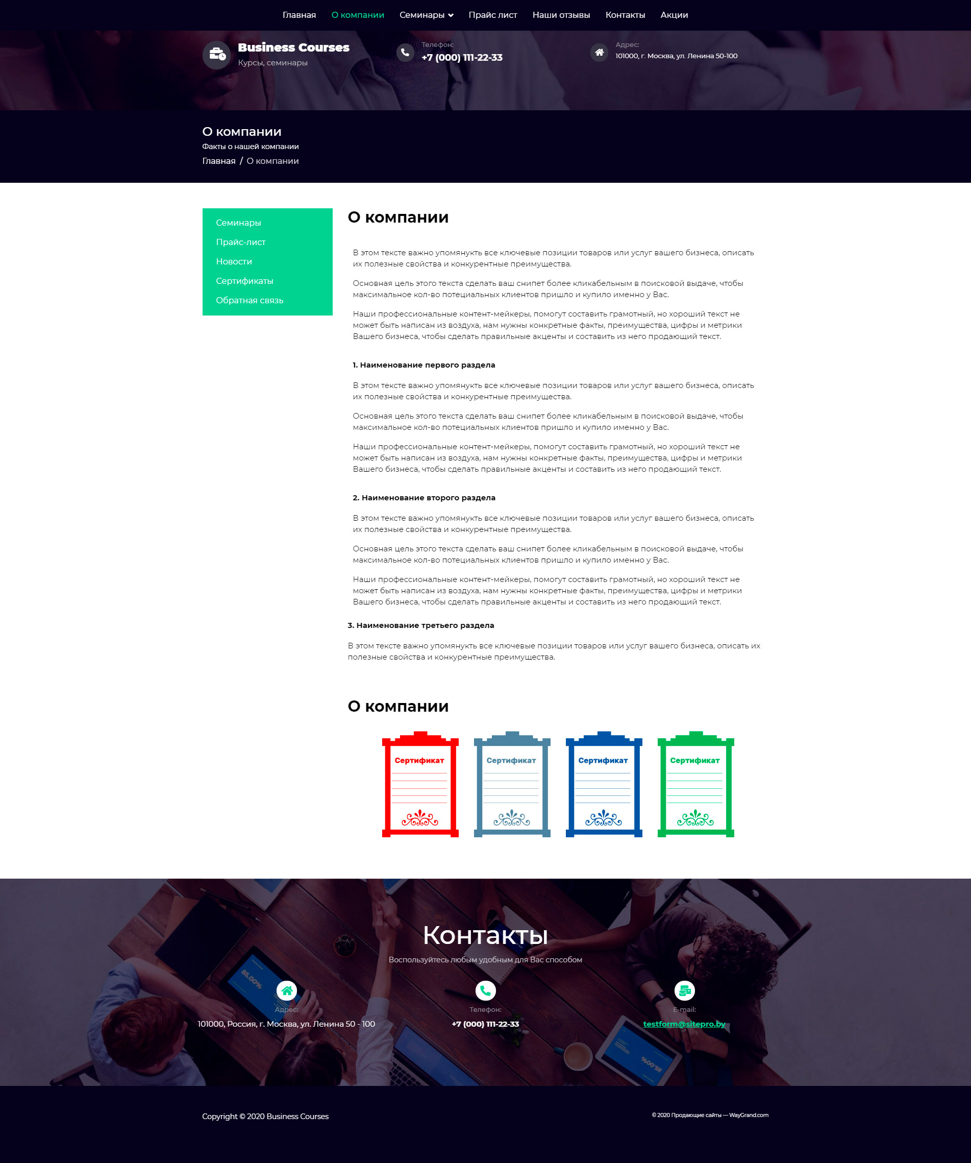Закажите готовый продающий сайт визитка #1448303 в Пятигорске за 5-7 дня «под ключ»: свёрстан, отрисован и готов к рекламе. Тематика шаблона «Бизнес курсы и семинары».