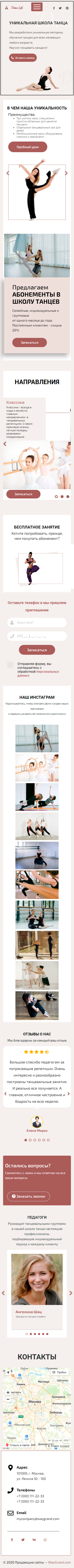 Закажите готовый продающий сайт лендинг #1923202 в Пятигорске за 1-3 дня «под ключ»: свёрстан, отрисован и готов к рекламе. Тематика шаблона «Школа танцев».