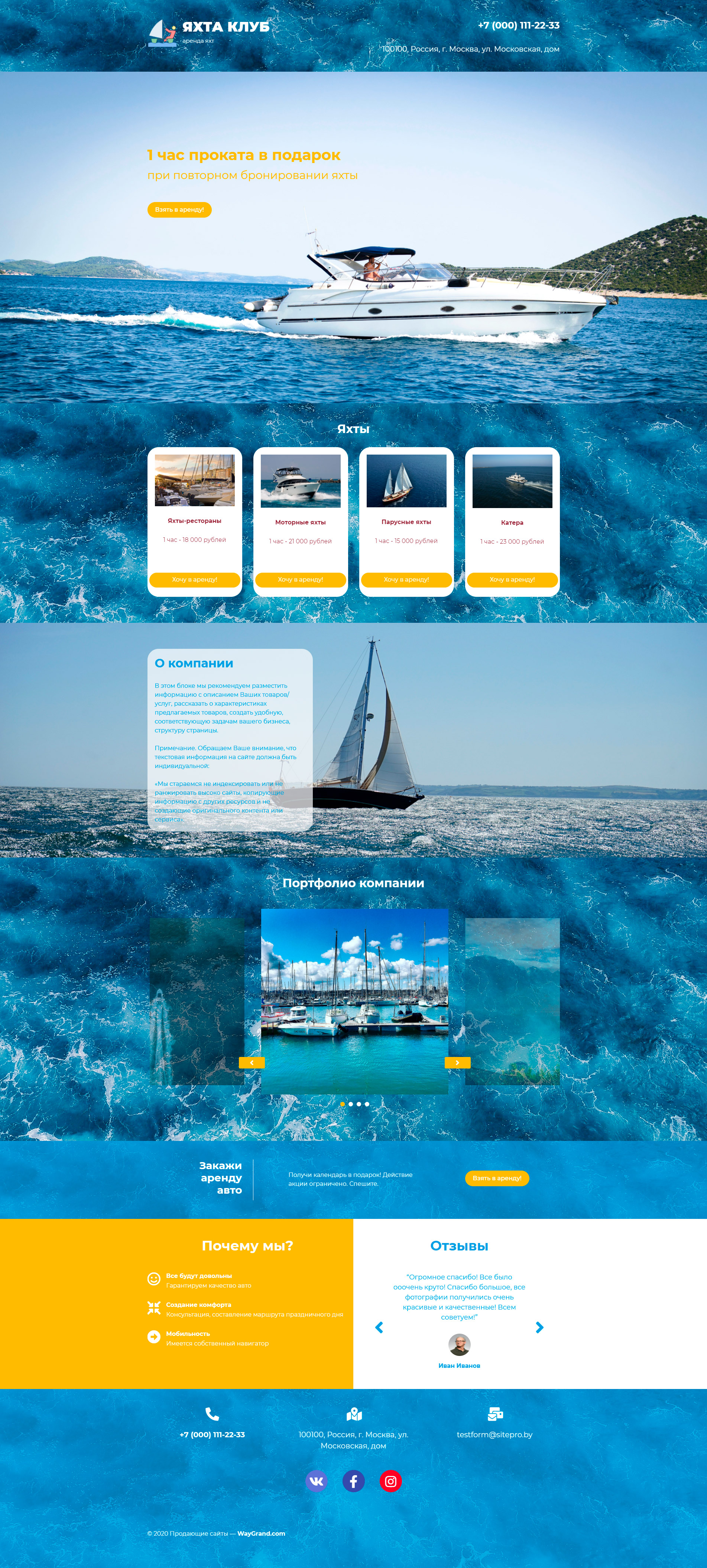 Закажите готовый продающий сайт лендинг #1958201 в Пятигорске за 1-3 дня «под ключ»: свёрстан, отрисован и готов к рекламе. Тематика шаблона «Яхт-клуб (аренда яхт)».