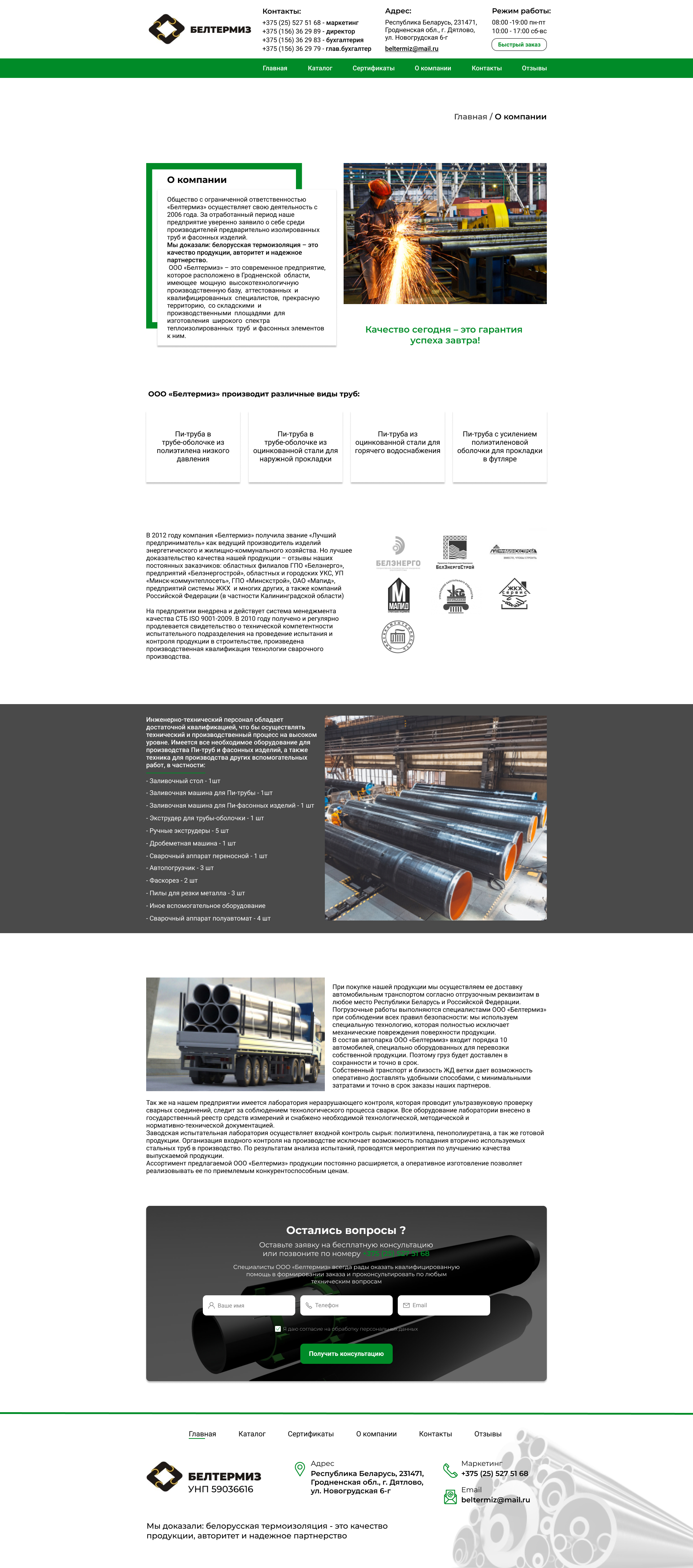 Закажите готовый продающий сайт визитка #141 в Пятигорске за 5-7 дня «под ключ»: свёрстан, отрисован и готов к рекламе. Тематика шаблона «Производство ПИ-труб».