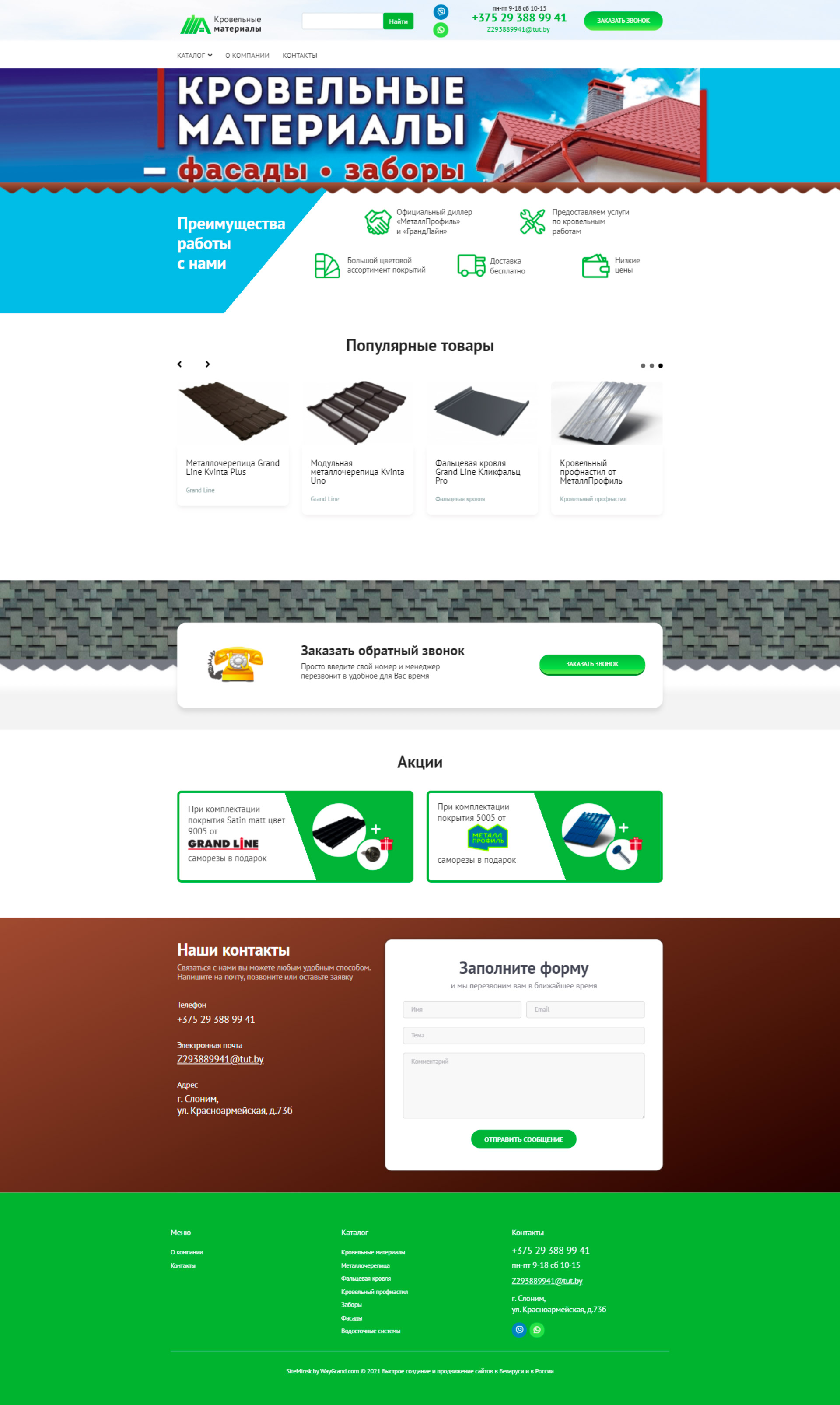 Закажите готовый продающий сайт визитка #324 в Пятигорске «под ключ» на waygrand по выгодной цене: свёрстан, отрисован и готов к рекламе. Тематика шаблона «Кровельные материалы».