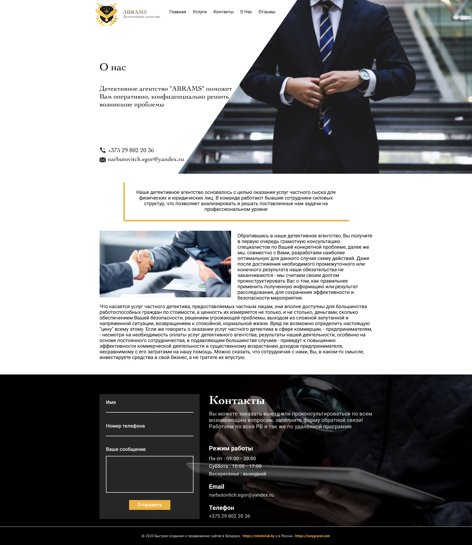 Закажите готовый продающий сайт визитка #239 в Пятигорске за 5-7 дня «под ключ»: свёрстан, отрисован и готов к рекламе. Тематика шаблона «Частное детективное агентство».