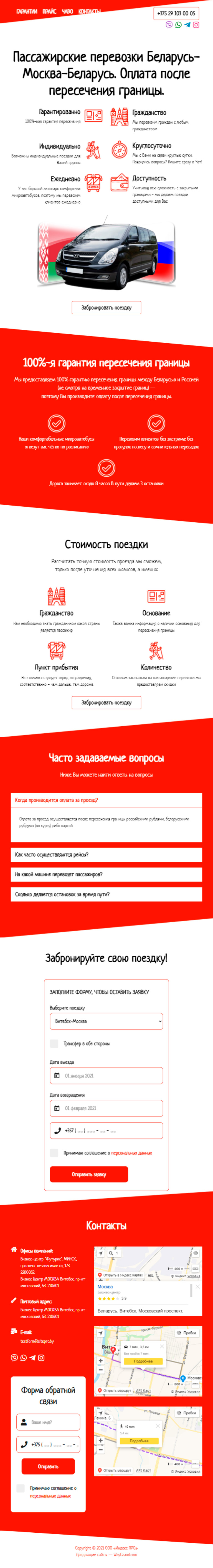 Закажите готовый продающий сайт лендинг #2528201 в Пятигорске за 1-3 дня «под ключ»: свёрстан, отрисован и готов к рекламе. Тематика шаблона «Пассажирские перевозки Беларусь-Москва-Беларусь».